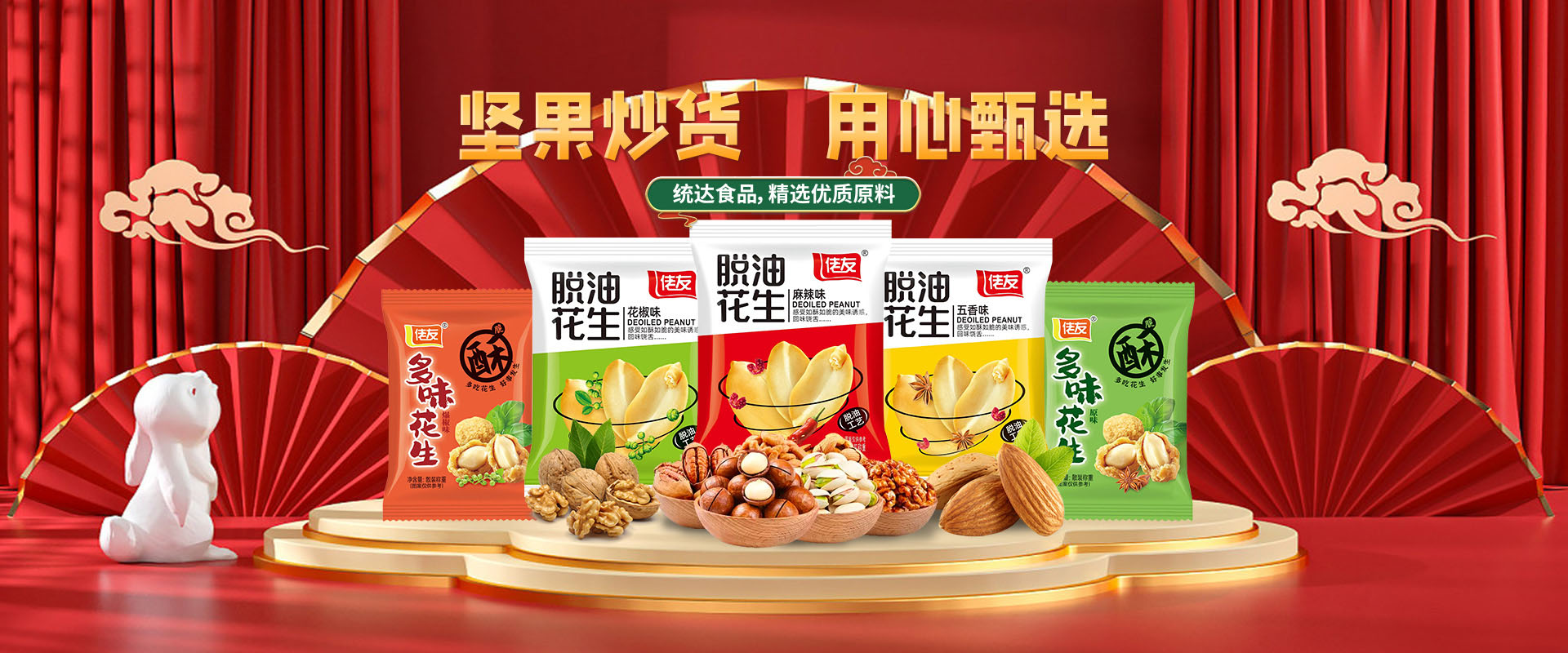 洛陽市統達食品有限公司創建于2013年,坐落于風景秀麗的嵩山腳下,東依省會鄭州、隴海、焦枝兩大鐵路在此交匯,西連高速,洛界高速,縱橫東西南北,207國道,交通便利。當地環境優美。經濟繁榮昌盛,實為興業辦企,鴻運福順的好地方。少林寺,白馬寺,龍門石窟,玄奘故里等名勝古跡星羅棋布,近在咫尺,盡展千年華夏文明。  我廠是一家集生產,研制,銷售為一體的食品加工企業,總投資1500萬元,廠房占地面積5000平方米,員工100余人,其中技術人員20余人,年加工能力達1500余噸。公司以堅果炒貨為主導,自主三大品牌:統達牌、紅仁館牌、佬友牌和授權品牌速達,主要產品有酒鬼花生系列,麻辣花生系列,香辣酥系列,果仁裹粉類系列,怪味胡豆系列,蠶豆、青豆系列等多個品類。產品暢銷全國各地,深受用戶好評。產品選自上等原料經多次精選而制,秉承濃郁的特色風味,保留其原材料的營養和原汁原味,富含不飽和脂肪酸和人體必需的氨基酸和鋅元素,不含膽固醇,黃曲霉素,不添加防腐劑、著色劑;具有濃郁獨特的香味,是真正的“從土地到餐桌”的健康食品。產品特點:色澤金黃,顆粒飽滿,然后經多種工藝加精良的天然配料精制而成,鎖生產出來的產品既保持著產品的獨到的口味,又不失產品天然的營養成分,滋味純正,辣椒鮮紅食之麻,辣,香,酥,甜,口感獨特,食后滿口生香,欲罷不能。久食不厭,老少皆宜,居家旅游,佐食配茶,宴賓饋友之佳品,深受廣大顧客歡迎和贊揚。  我們將以精湛的工藝,科學的管理,嚴格的質量控制,優異的品質保障,以誠信,創新,勤奮,求實的企業精神,立于強者之林,迎接新的挑戰。以飽滿的熱情迎接與你的合作。  本公司“以質量求生存,以誠信求發展”歡迎有志之士加入我們的團隊,攜手共創美好明天!